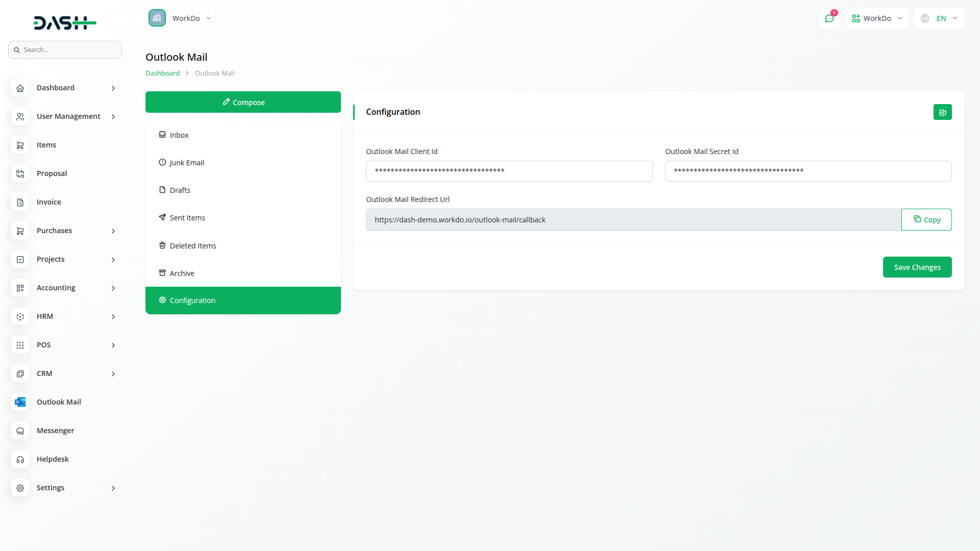 Setting up your Outlook Mail integration is straightforward with Azure portal connectivity. The system requires your Outlook Client ID and Secret ID to establish secure authentication. Simply navigate to the configuration section and input your credentials obtained from Azure registered application portal. The redirect URL must be properly configured in your Azure setup to ensure seamless token generation. Once credentials are saved, click the "Generate Token" button to sync your Outlook account and begin accessing your email data instantly.