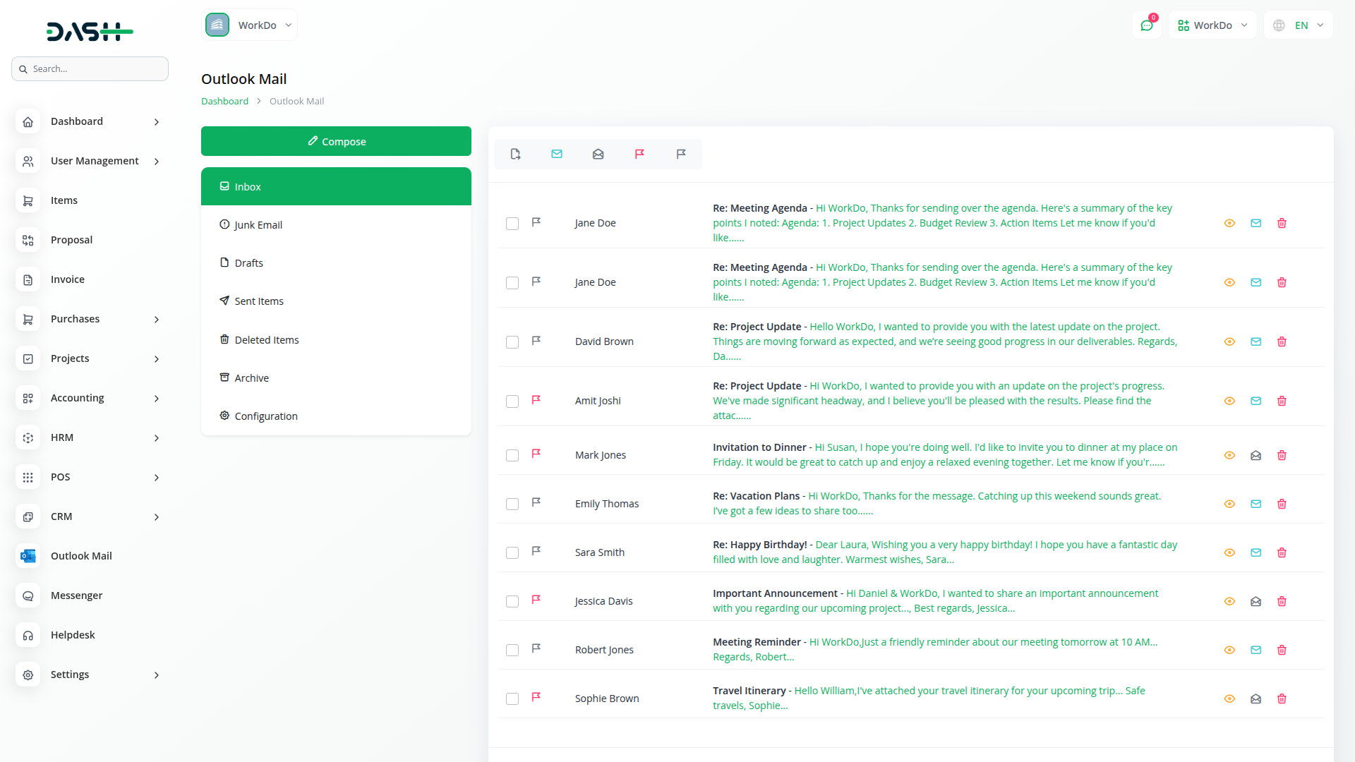 Access all your essential Outlook folders from a single interface, including Inbox, Junk Email, Drafts, Sent Items, Deleted Items, and Archive. The system fetches emails from each folder while maintaining the original folder structure and organisation. Users can seamlessly navigate between different folders to manage their complete email workflow. This comprehensive folder access ensures no important emails are missed, regardless of their current location. Perform essential email actions directly through the interface, including mark as read/unread, flag/unflag messages, move emails between folders, and delete unwanted messages.